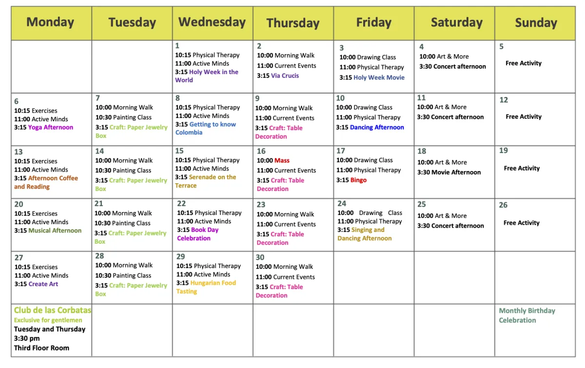 Activities available during April 2026